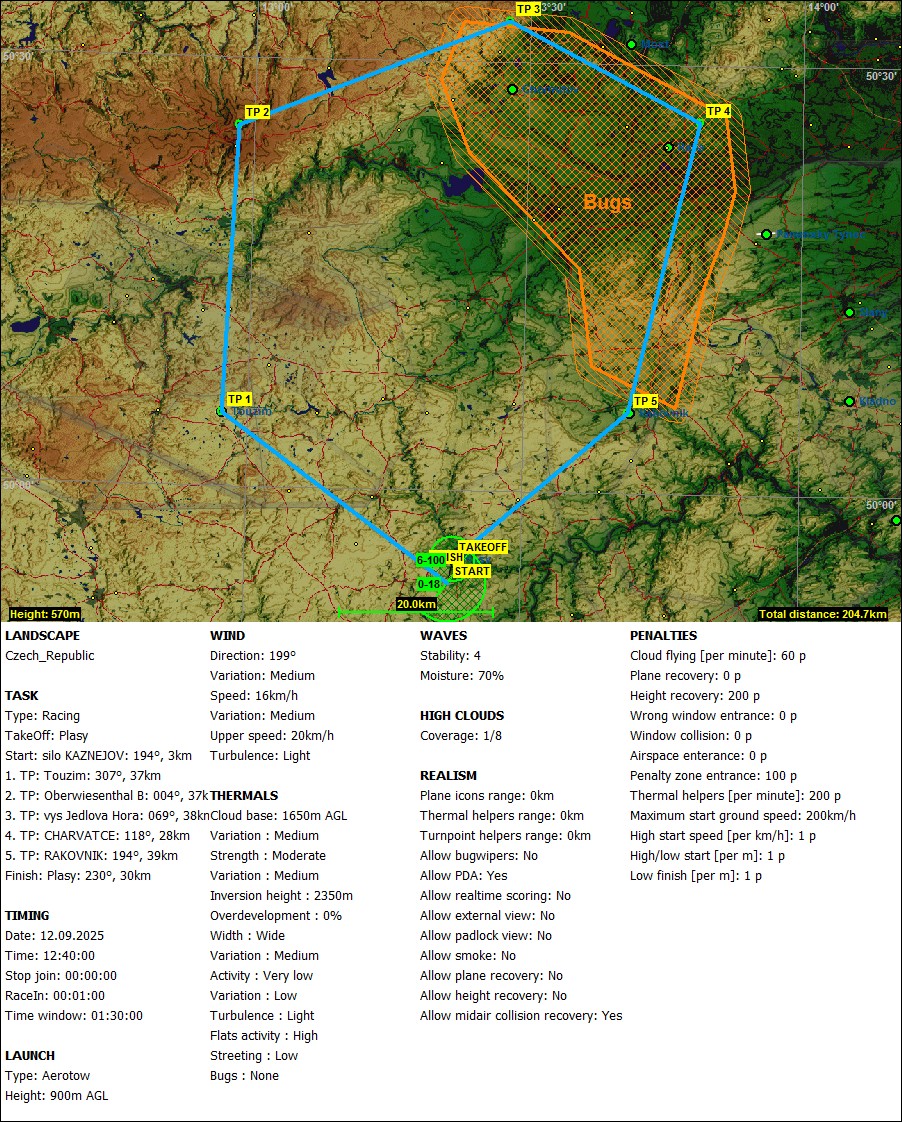 Высота старта 1800 м. Финиш 600 м. Ветер юго-западный 15-20 км/ч.