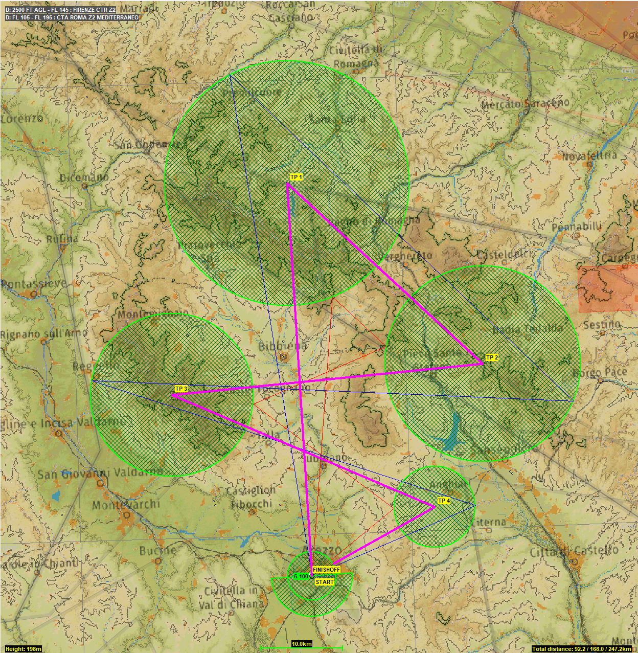 Четыре зоны радиусом 15, 12, 10 и 5 км соответственно. Дистанция AAT - от 92 до 247км.