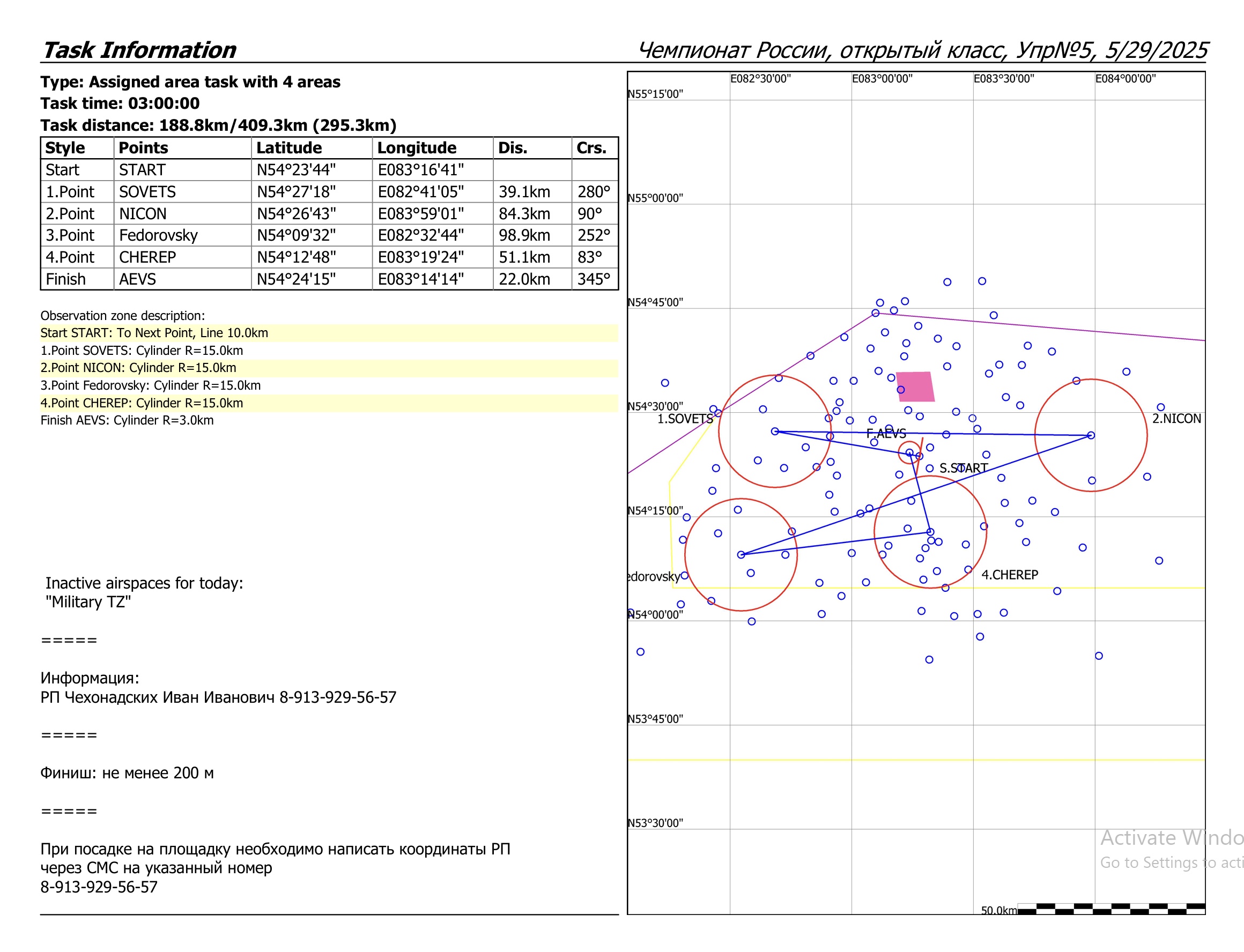 1.Точка: SOVETS (R=15 км, D=38,94 км)